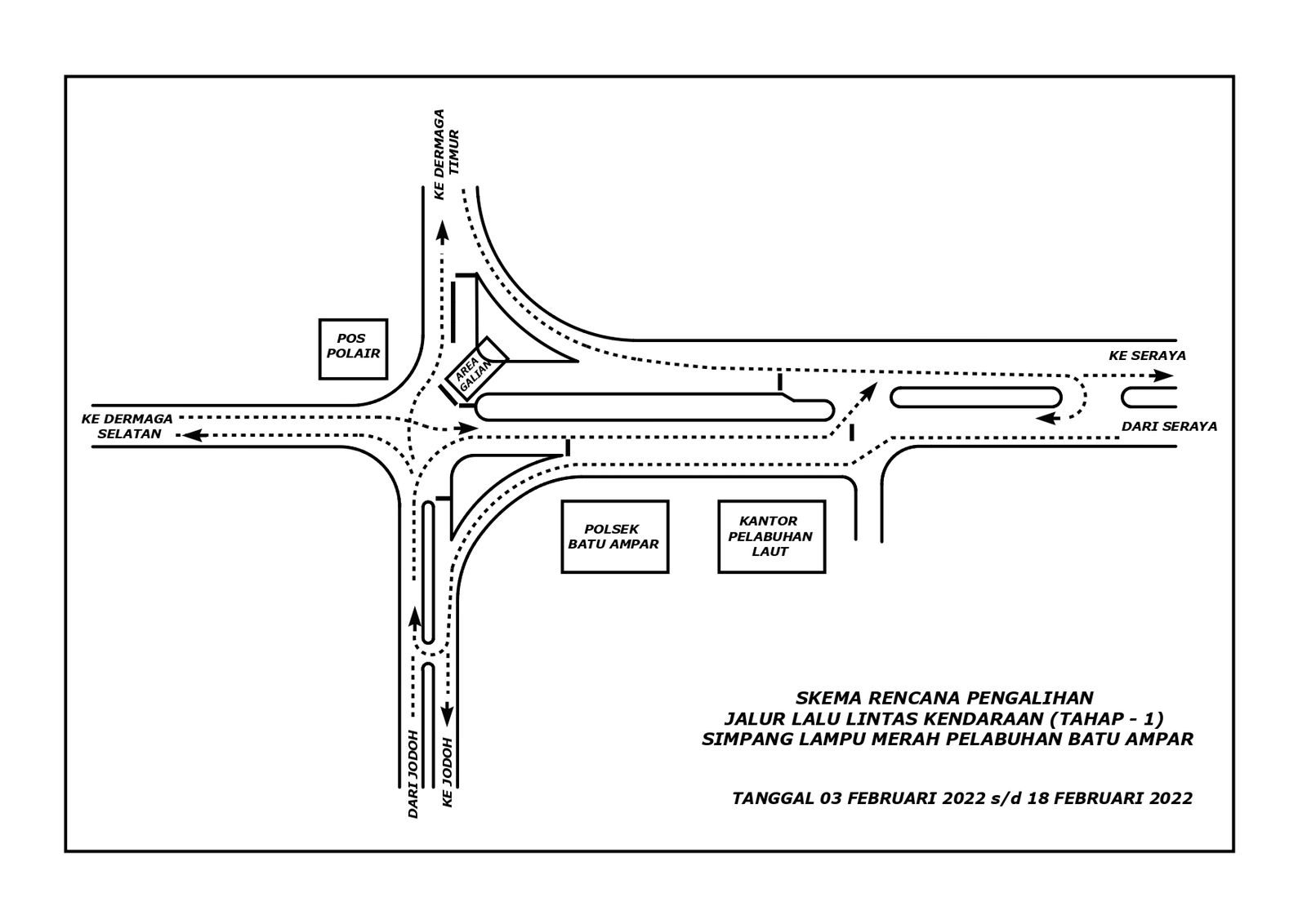 Skema rute lalu lintas mengalami perubahan dari arah Seraya menuju pintu masuk Dermaga Timur dan Dermaga Selatan Pelabuhan Batu Ampar, dimana pengendara akan dialihkan terlebih dahulu melalui simpang Polsek Batu Ampar, kemudian putar balik (U-Turn) menuju Pos Polair tidak jauh dari pintu masuk pelabuhan.