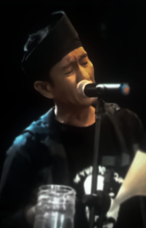 “Ini pertama kalinya saya baca puisi,” katanya, sebelum membaca “Wahai Lelaki Pemanggul Karung Beras.”