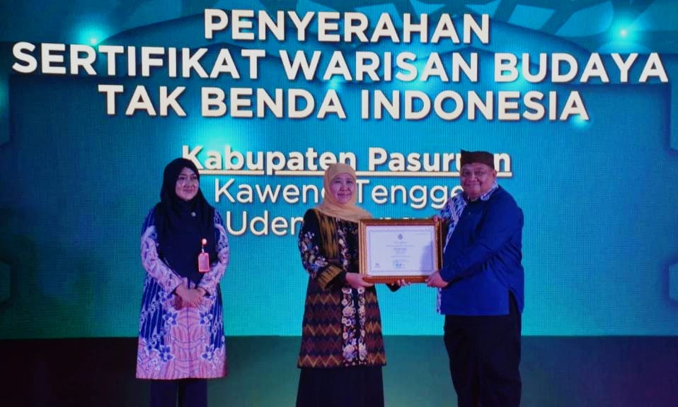 Sertifikat WBTb diserahkan langsung oleh Gubernur Jawa Timur, Khofifah Indar Parawansa, kepada Pemerintah Kabupaten Pasuruan dalam agenda kebudayaan yang digelar di Taman Krida Budaya Jawa Timur, Jumat (27/2/2026). Status WBTb tersebut ditetapkan oleh Kementerian Kebudayaan Republik Indonesia.