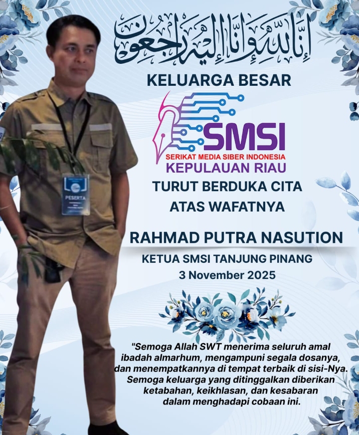 Gebraknews.co.id, Tanjungpinang – Kabar duka menyelimuti dunia pers di Kepulauan Riau. Ketua Serikat Media Siber Indonesia (SMSI) Tanjungpinang, Rahmad Nasution, dikabarkan meninggal dunia pada Senin sore (4/11/2025).