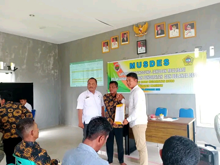 Musyawarah tersebut berlangsung di gedung serba guna Desa Pulau Moro, pada pukul 09:00 WIB, yang dihadiri Camat Moro, Andri Winarta, Kepala Desa Pulau Moro, Johan, Ketua BPD dan tokoh masyarakat, ketua RT/RW se-Desa Pulau Moro, serta undangan lainnya.