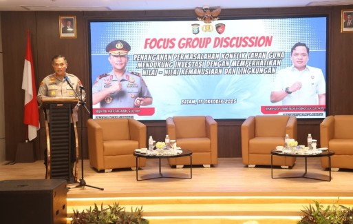 Gebraknews.co.id, Batam – Kepolisian Daerah Kepulauan Riau (Polda Kepri) menggelar Focus Group Discussion (FGD) bertema “Penanganan Permasalahan Konflik Lahan Guna Mendukung Investasi dengan Memperhatikan Nilai-Nilai Kemanusiaan dan Lingkungan” di Asia Link Hotel, Batam, Rabu (15/10/2025).
