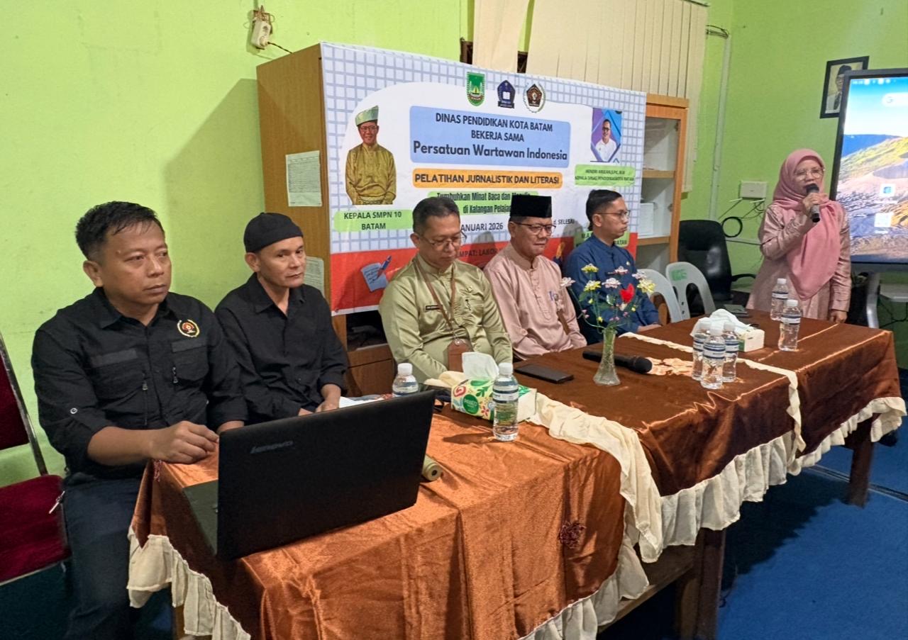 Kepala Dinas Pendidikan (Kadisdik) kota Batam Hendri Arulan yang diwakili Kabid Joni S.Pd membuka secara resmi kegiatan pelatihan Literasi dan pelatihan jurnalistik bagi sekolah SMPN 10 kota Batam.